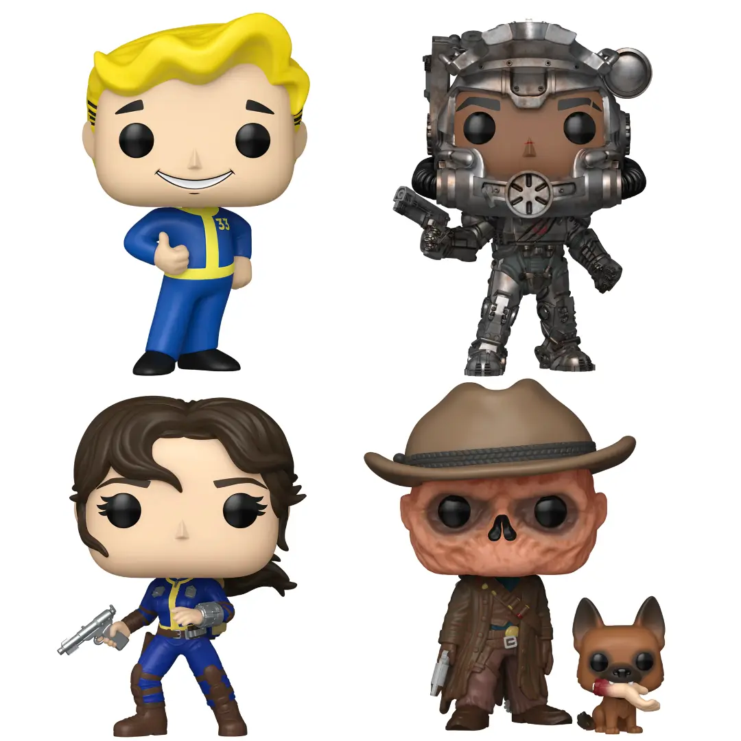 - Dieses Bundle enthält: Funko POP! Fallout – Lucy MacLean 1764 + Funko POP! Fallout – Maximus 1765 + Funko POP! Fallout – The Ghoul w/CX404 1766 + Funko POP! Fallout – Vault Boy 1767